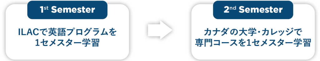 ILACで16週間英語を学んだ後、バンクーバーもしくはトロントのカレッジ/大学で1ターム(11~16週間)学部聴講するプログラムです。